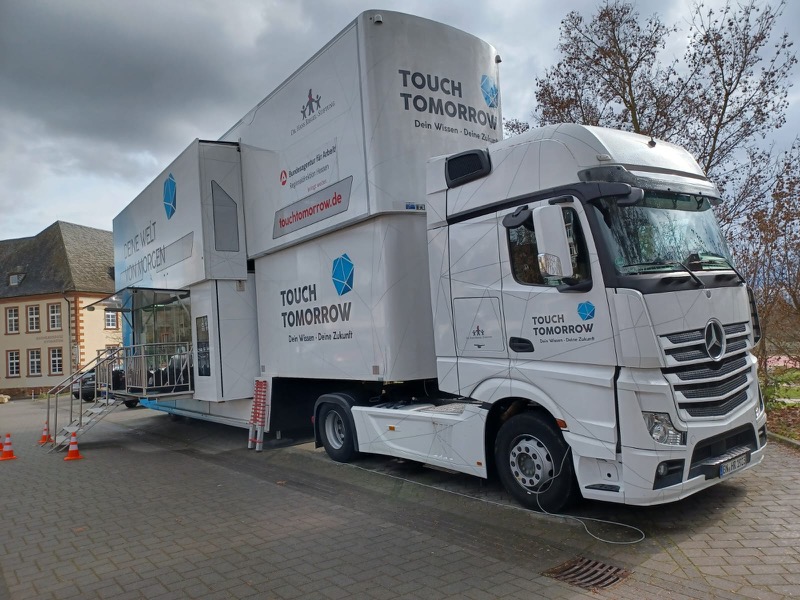 Der TouchTomorrow-Truck ist konzipiert für 8. und 11. Klassen. Moderiert wird der Besuch von vier „MINT-Coaches“ (speziell geschulte Naturwissenschaftler*innen), die mit den Schülerinnen und Schülern einen Dialog auf Augenhöhe führen. Dabei wird niemand zu MINT überredet. TouchTomorrow ist ein inspirierendes Informations- und Interaktionsangebot, das auch sprachlich oder gesellschaftswissenschaftlich interessierte Schülerinnen und Schüler anspricht und ihnen neue Perspektiven eröffnen kann – insbesondere im Hinblick auf die zunehmend fachübergreifenden Formen der Zusammenarbeit in wechselnden Teams.